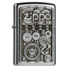 De werelberoemde windbestendige Zippo aansteker met de unieke klik. Deze hervulbare aansteker gaat een leven lang mee. Thema: Gear Wheels met Zippo Logo. Type: Embleem. Afwerking: Satin Chrome. Materiaal: RVS.