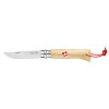 Op dit N08 zakmes staat het wapen van Savoye afgebeeld. Ter ere van de Franse Alpen. Gelakt beukenhout, uitgerust met een rode leren koord.